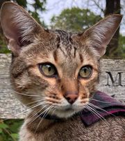 Pushkin is no ordinary cat; he’s a stunning Savannah cat with a unique blend of wild and domestic traits.